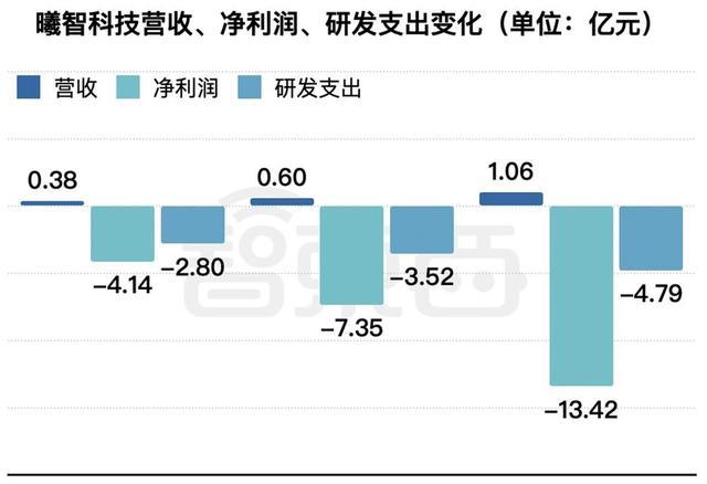 营收利润研发支出柱状图 · 曦智科技2023-2025年营收、净利润、研发支出数据