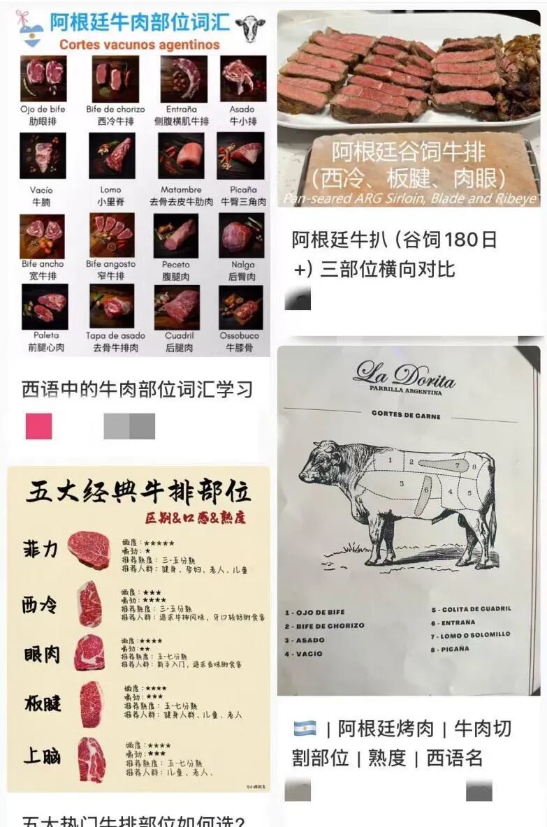 令人眼花缭乱的阿根廷牛排部位选择。(图/社交媒体截图)